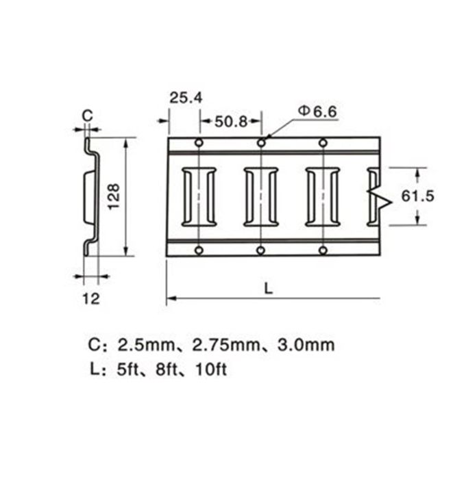 Rail horizontal série E 2,5mm x 10' galvanisé (E-track)